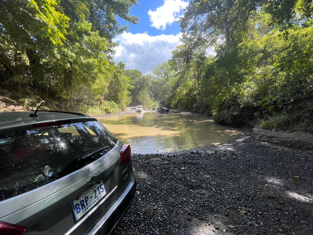 When driving from Liberia to Playa Flamingo you have options. The first, which I highly recommend, brings you in from the south through Huacas and Brasilito (some really cool shops here) and takes around an hour and a half. The second option, which requires a 4-wheel drive (though I did some smaller cars make it, but I wouldn’t advise it) brings you in from the north and take a hour and 10 mins. But, as you can see from the photos below, there’s a river crossing.
